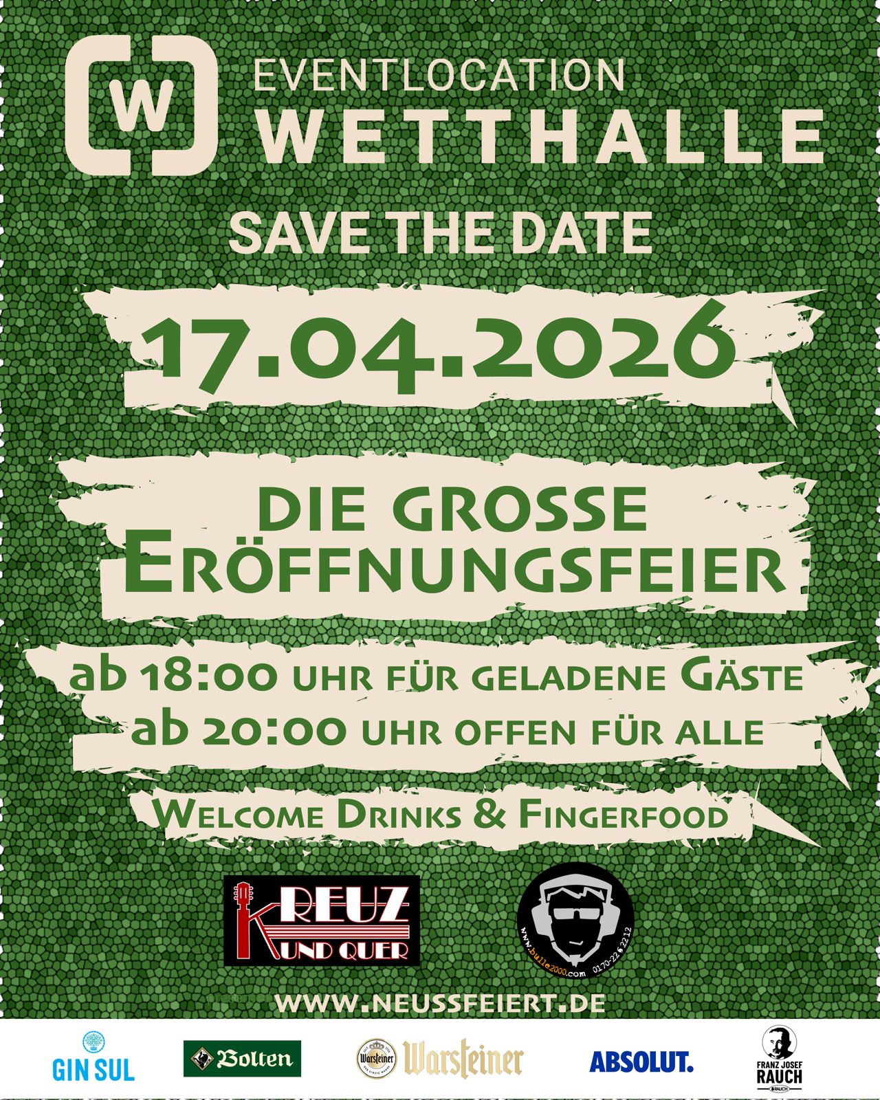 Am 17.04.2026 feiert die neue Eventlocation Wetthalle im Neusser Bürgerpark ihre offizielle Eröffnung – und du bist herzlich eingeladen!